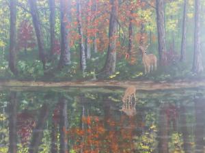I am pleased to announce that my paintings are hanging in the Mystery of the Park exhibit at the Visitors Center in Algonquin park. If you are out to see the beautiful fall colours the show is running until October 29th. This one is named “Tender Sentry”